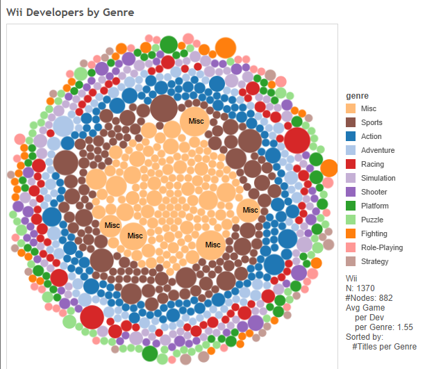 Of the set of consoles, Wii-developer’s set their focus on making non-traditional games and actually moved Action games towards the 3rd slot while it took 1st in development on the PS3/X360. The games covering the Misc Section, the largest selection of the Wii’s library, was the Music Games (e.g. Sing-It, RockBand, Just Dance), which we talked about heavily in the previous article, but also games like Fitness Assistants (ala Wii Fit, Zumba) and many trivia games, which shows that developers were heavily pushing the “family-fun” aspect of the console.