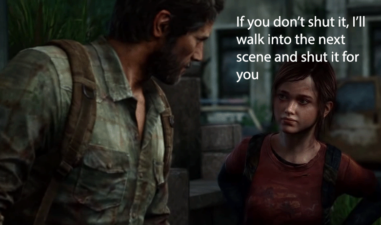 Uncharted and The Last of Us relaxes their gameplay by having their characters slow to a creeping pace so that the player can’t force their way through a conversation before it finishes by accidentally exploring their way out of a dialogue-area.