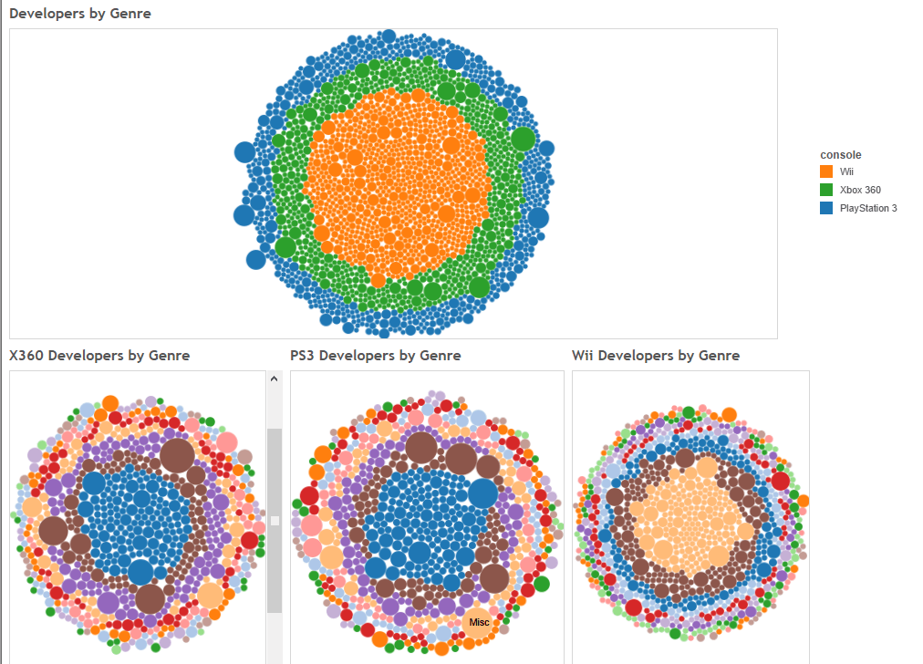 What’s interesting about having all of this data at your disposal is seeing quickly how consoles can be remembered, or to drudge up old arguments with harder proof about what assumed at certain points but couldn’t really prove it yet. What the above shows is just how much developers spread across various genres on various consoles. Below are the pictures split-up.